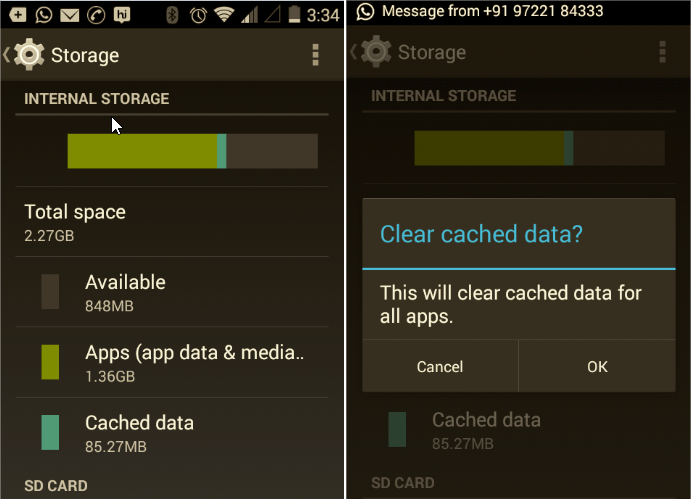 इसके लिए “Settings > Storage > Internal Storage” पर जाकर “Cached Data” पर क्लिक करें|