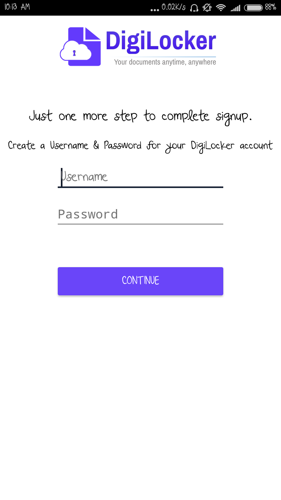 चूँकि एप्प अभी बीटा या टेस्टिंग मोड में है तो हम आपको सुझाव देंगे की साइन-अप के लिए आप ऊपर दी गयी वेबसाइट का सहारा लें। साइन-अप का विकल्प डिजी लॉकर में नया खता खोलने के लिए किया जाता है।
