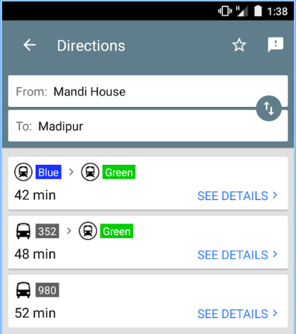 गूगल द्वारा निर्मित ये एप दिल्ली में मेट्रो और बस में सफ़र करने वाले लोगों के लिए बना है,  जिसके माध्यम से दिल्ली में किसी भी स्थान से मेट्रो और बस के रूट और टाइम टेबल के बारे में जानकारी हासिल कर सकते है।