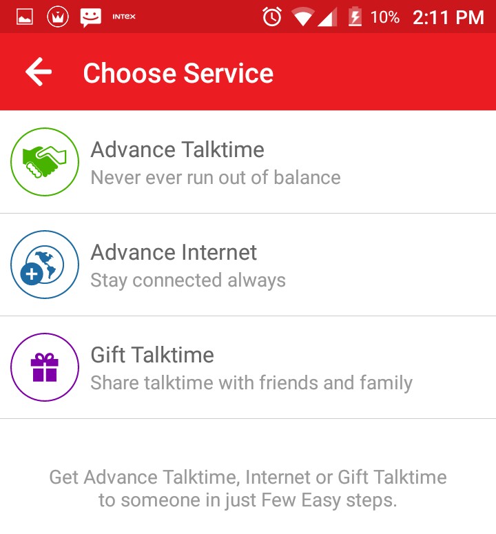 यदि आप मुख्य बैलेन्स ख़त्म हो गया हो या डेटा बैलेन्स ख़त्म हो गया तो तो कुछ समय के लिए एयरटेल से मुख्य और कॉल बैलेन्स प्राप्त इसी एप के माध्यम से प्राप्त कर सकते है।