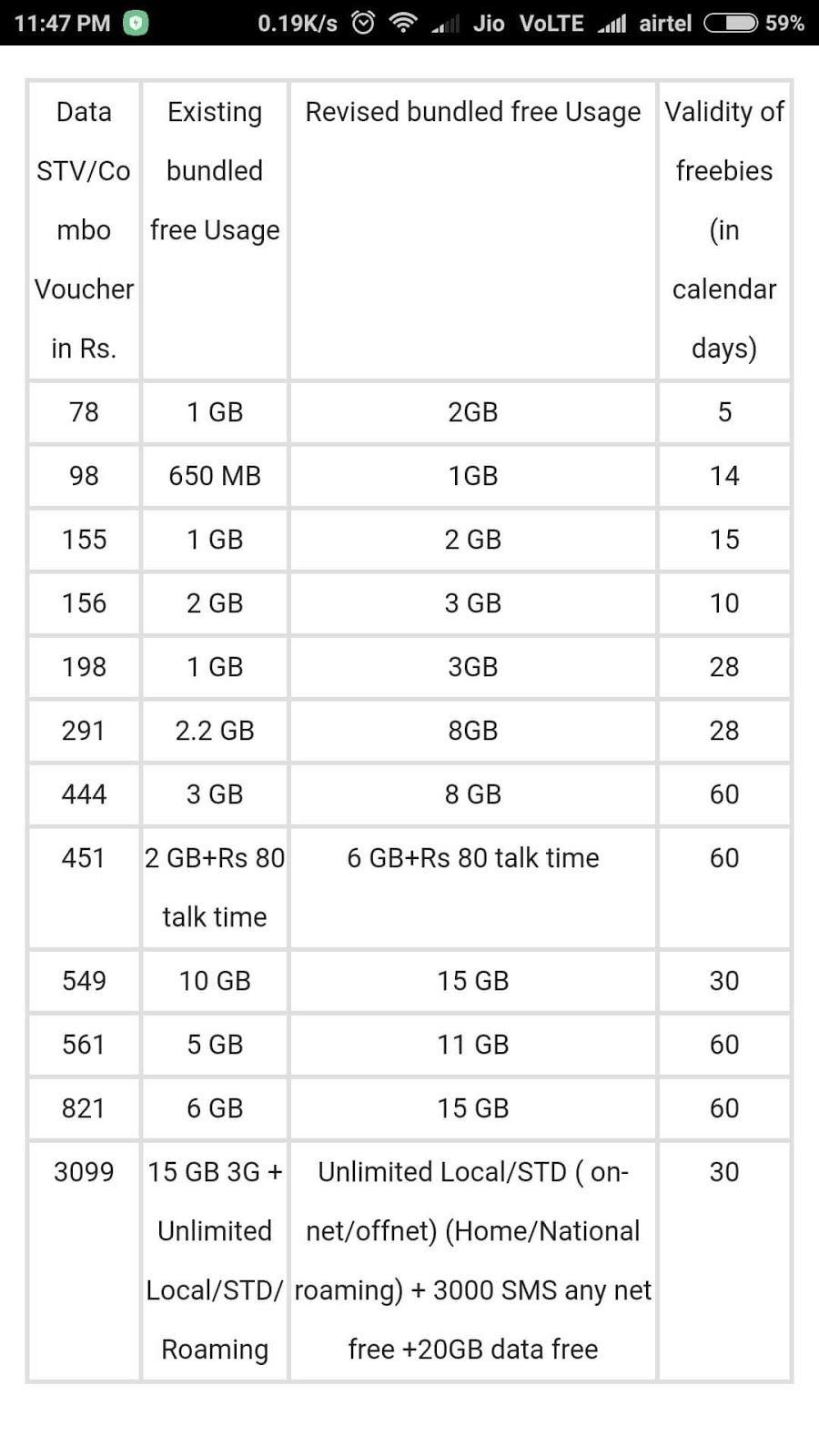 बीएसएनएल ने अपनी नयी रणनीति के तहत डेटा पैक्स के दाम लगभग तीन चौथाई तक गिरा दिए हैं। जैसा की आप देख सकतें हैं। पहले ₹78 में जहाँ 1जीबी डाटा मिलता था अब वहीँ 2जीबी डेटा मिलेगा। वहीं 291 में 2.2जीबी की जगह 8 जीबी डेटा मिलेगा।
